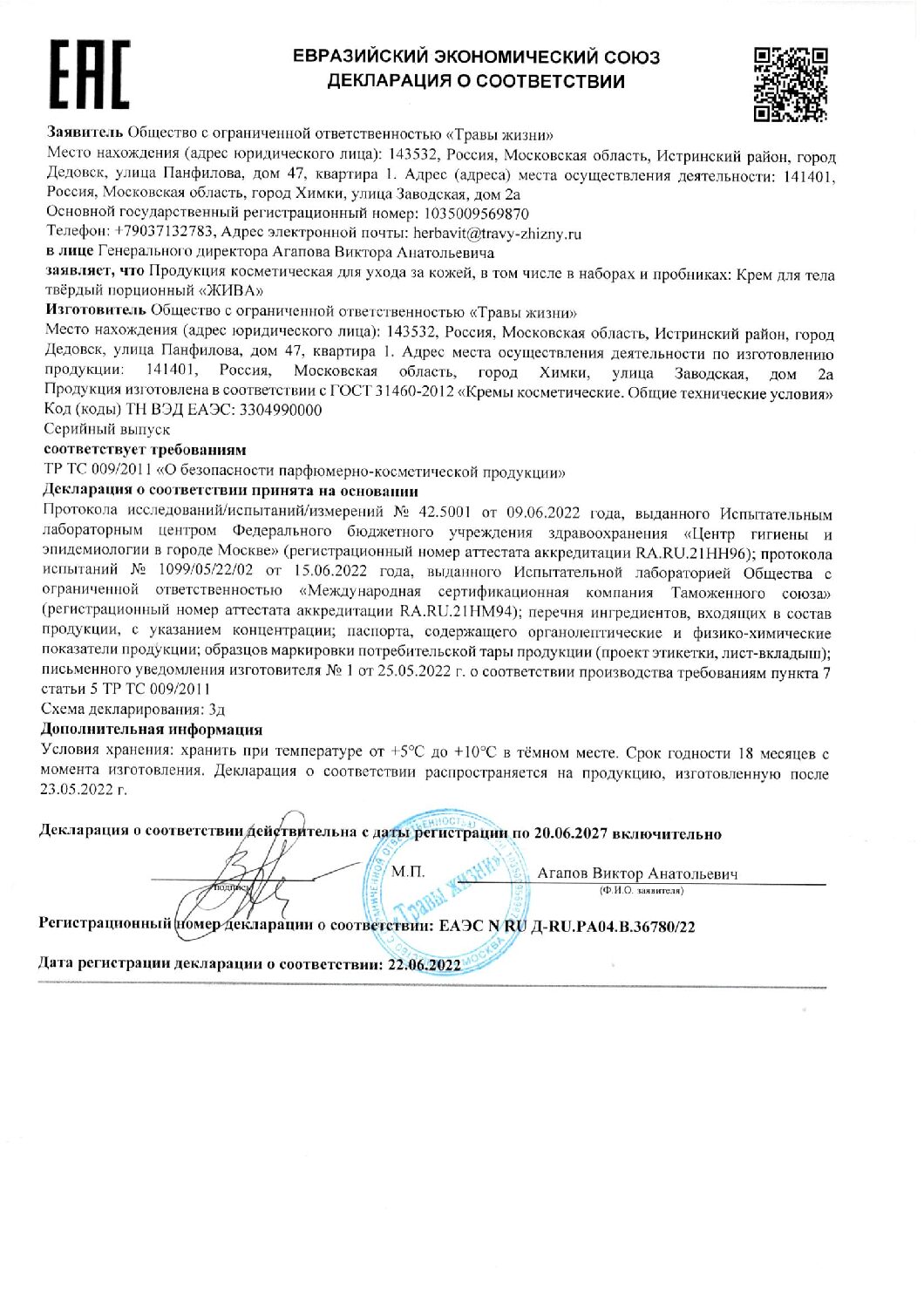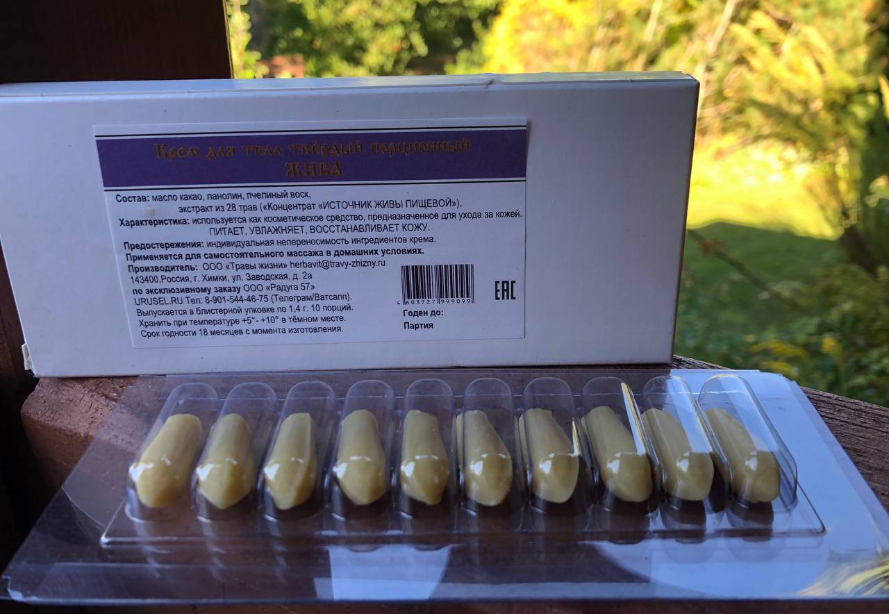 Крем твёрдый порционный Жива использовать утром и вечером, после душа или бани. Для самостоятельного массажа.