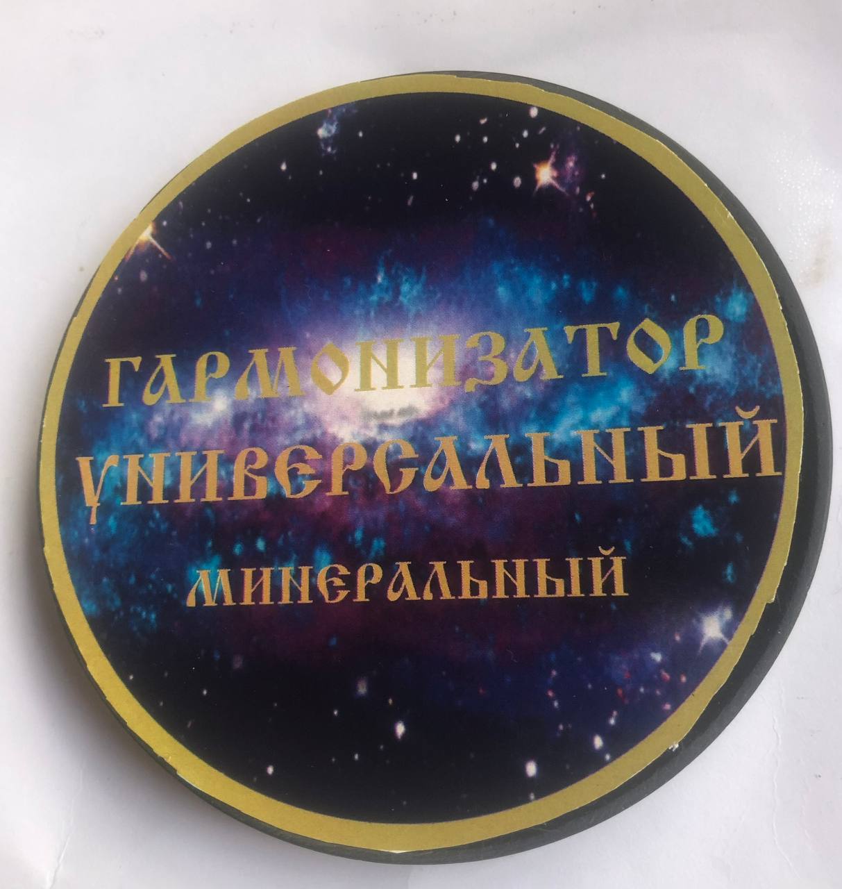 Представляет собой круглой формы пластину диаметром 85 мм и толщиной 8 мм. В настоящее время, появился гармонизатор пространства большего диаметра и соответственно большего радиуса действия. Спрашивайте.